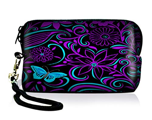 AUPET Purple Blue Flowers Digital Camera Case Bag Pouch Coin Purse with Strap for Sony Samsung Nikon Canon Kodak