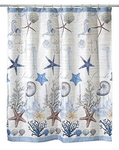 - SUPERIOR QUALITY: Instill a calm, oceanside feel with this decorative shower curtain. The Avanti Antigua Ivory with Blue and Tan Starfish, Shells, and Coral Nautical Shower Curtain will immediately make you feel comforted and ready for a refreshing shower with its soothing, neutral tones. Avanti's decorative shower curtains are an elegant style choice that can enhance your bathroom decor without all the effort of a complete makeover. Made of sturdy, high quality fabric, this shower curtain will look brand new for years to come.