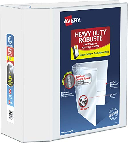 Avery Heavy-Duty View Binder, 5" One Touch Slant Rings, 1,050-Sheet Capacity, DuraHinge, White (79706)