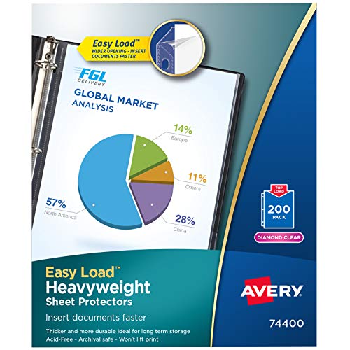 Avery Heavyweight Diamond Clear Sheet Protectors, 8.5" x 11", Acid-Free, Archival Safe, Easy Load, 200ct (74400)