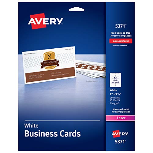 Avery Printable Business Cards, Laser Printers, 250 Cards, 2 x 3.5 (5371)