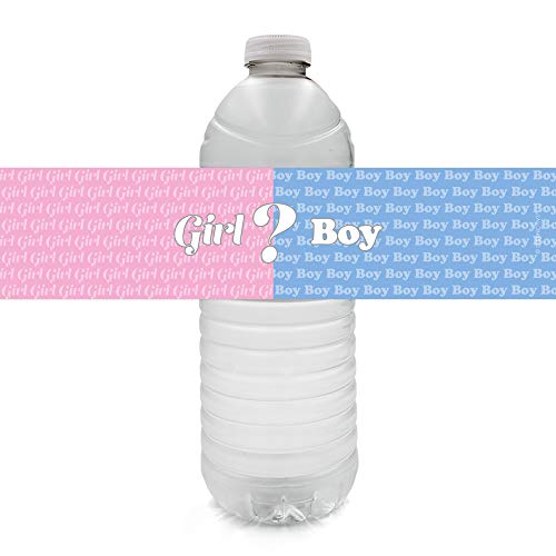 Order includes 24 - Waterproof Gender Reveal Baby Shower Water Bottle Labels. Stick on water bottles for decorative party refreshments. Fits most standard size water bottles, 8.5" x 2" each. Water bottles not included. For best results and easy application, remove the original water bottle labels first and then apply your new pink and blue baby gender reveal party water bottle labels to dry, room-temperature bottles.Features: