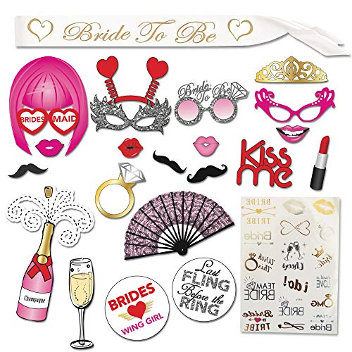 Bachelorette Party Supplies Kit - Bridal Shower Supplies | Bride to be Sash, LARGE Bachelorette Party Photo booth Props (20 pieces) with Glitters, Bachelorette Tattoos By Amera Ultra