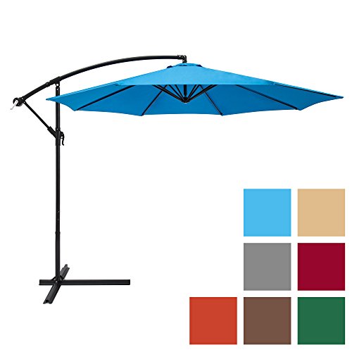 Best Choice Products 10-Foot Offset Hanging Aluminum Polyester Market Patio Umbrella w/ 8 Ribs and Easy Tilt Adjustment, Blue