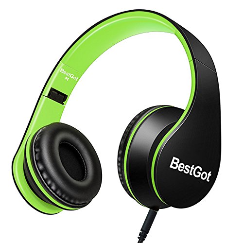 Bestgot Part#: Bestgot-bg6023 - BestGot Kids Headphones with Microphone for Kids Adult in-line Volume Included Transport Bag Foldable Headset with 3.5mm Plug Removable Cord (Black/Green)