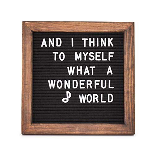 MAKE YOUR TRUTH KNOWN. Amidst the busyness of life, choose to make time for little letters with a big impact. Express yourself. Impart wisdom. Stand out. Embellish your living space, work space, and special event. Bring a little extra joy into each day. Do all of the above with our durably constructed, designer curated 10x10 felt letter board with changeable letters. CREATE AND CELEBRATE...WITH PURPOSE. Bring a sliver of the old world and its lovely nostalgia into your life in a stylish and on-trend way. There's something comforting about taking our sturdy white characters and placing them purposefully on a felt letter board with our beautiful and natural pine trim. It harkens back to simpler times and yet it adds the perfect touch to any modern home, workplace, or gathering. DELIGHT IN THE DETAILS. Our letter board is crafted out of natural pine wood and high-quality, long-lasting, richly pigmented black felt. It comes with a brass wall hanging mount attached to the back. 364 white 3/4 inch letters and characters come ready to store safely in a tastefully paired light canvas drawstring pouch. "Brevity is the soul of wit." - William ShakespeareFeatures: