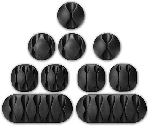 Bluegogo Cable Clips - Self-Adhesive Desk Cable Organizer, Durable Cord Management, Wire Holder, Wire Management, Black(10 Pack)