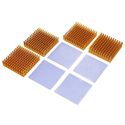 - BNTECHGO 4 Pcs 40mm x 40mm x 11mm Golden Aluminum Heatsink Cooling Fin + 4 Pcs 40mm x 40mm x 0.5mm Silicone Based Thermal Pad
