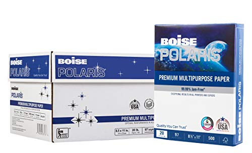 BOISE POLARIS Premium Multipurpose Paper, 8.5 x 11, 97 Bright White, 20 lb, 10 ream carton (5,000 Sheets)