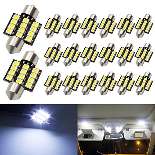 Boodled C5w 31mm(1.25") LED Bulb 3528 12-SMD Chipsets Xenon White Festoon Interior Dome Map Trunk Cargo LED Bulbs Lights DE3175 DE3021 DE3022 3175,6000K~6500K,DC12V(Pack of 20)