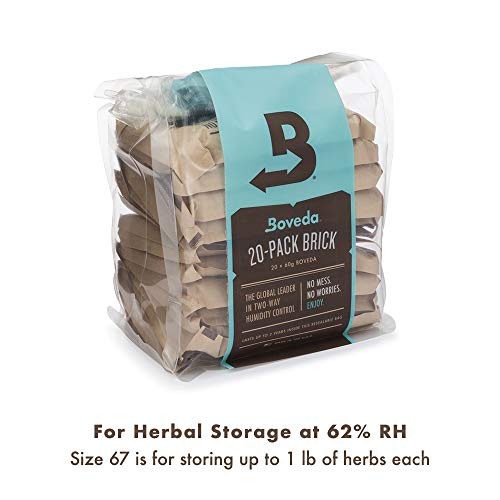 Buy Boveda in bulk with our new 20 pack bricks and save money. Each brick contains 20 brown Kraft paper Boveda that are not individually overwrapped in plastic. This saves you the time and hassle of having to unwrap the packs every few months when you change out your humidors. Because we don't have to wrap each pack, this is the most cost effective way to buy your Boveda. 60 gram Boveda provide hassle-free maintenance of full-size humidors and Humidor Bags. Every Boveda RH is accurate to +/- 1% in an air tight environment, which humidors are not. It's common that the actual RH of your humidor will stabilize up to 5 points lower than the Boveda RH you're using, due to humidor and ambient dryness. That's why we make Boveda in six different RH levels-62, 65, 69, 72, 75 and 84 percent. So you can use the RH that achieves the humidity you and your cigars prefer. And unlike distilled water and PG solutions with sponge/gel/crystals/beads that will impart unwanted flavors on your cigars, Boveda's reverse-osmosis membrane only releases pure water vapor and Boveda will never damage anything through direct contact. Once you smoke a cigar stored with Boveda, you'll finally enjoy it exactly as the master blender intended.Features: