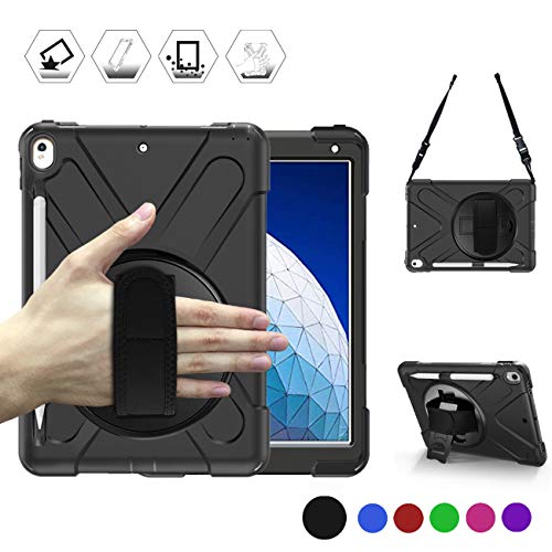BRAECN iPad Air 10.5 Case 2019,iPad Pro 10.5 Case 2017 - Heavy Duty Shockproof Case Cover with Pencil Holder,Rotating Stand/Hand Strap,Carrying Shoulder Strap Fit iPad Air 3rd Gen case 10.5 -Black
