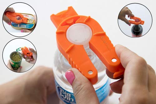 Brenium Part#: BRE-BCO-OR 085628300800 - Brenium Multifunctional Bottle Can Opener, Plastic Water Bottle, Twist-Off, Pull Tab Soup Weak Hands, Seniors, Elderly, Rheumatoid Arthritis, Bottle Gripper, Ergonomic Lid Seal Remover