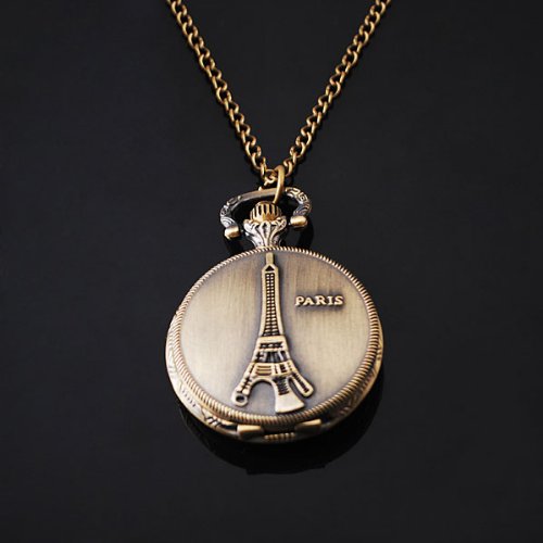 Chonlyshop Part#: 1712070450 - Bronze Vintage Eiffel Tower Paris Women Bronze Chain Necklace Pocket Watch By Chonlyshop