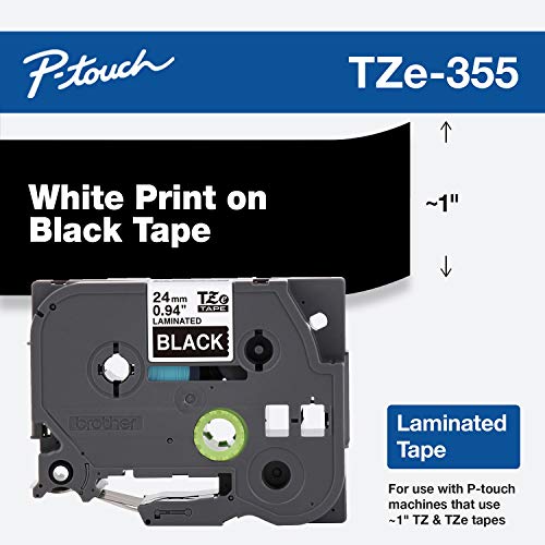 Brother Genuine P-touch TZE-355 Tape, 1" (0.94") Wide Standard Laminated Tape, White on Black, Laminated for Indoor or Outdoor Use, Water-Resistant, 0.94" x 26.2' (24mm x 8M), Single-Pack, TZE355