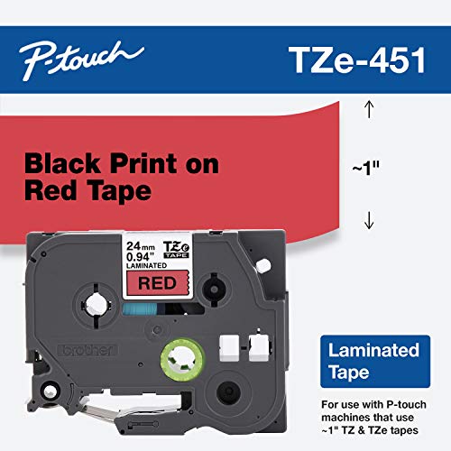 Brother Genuine P-Touch TZE-451 Tape, 1" (24 mm) Standard Laminated P-Touch Tape, Black on Red, For Indoor or Outdoor Use, Water-Resistant, 26.2 ft (8 m), Single-Pack