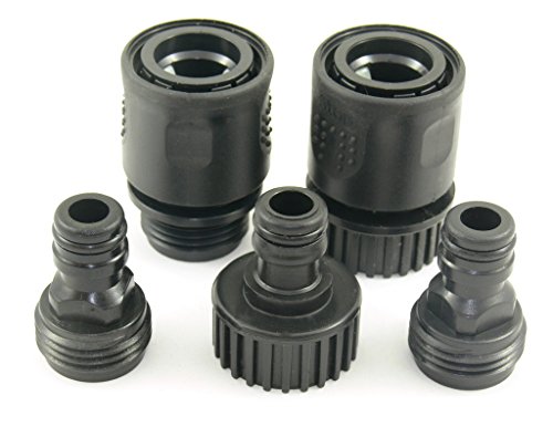 This 5-piece soft-touch garden hose connection kit contains all the necessary types of adaptors to allow quick switches of garden tools using a simple pull and click quick-connect system.The Kit includes: