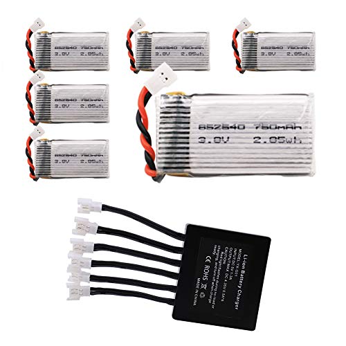 6 x 750mAh batteries, 1 x 6-Port Charger