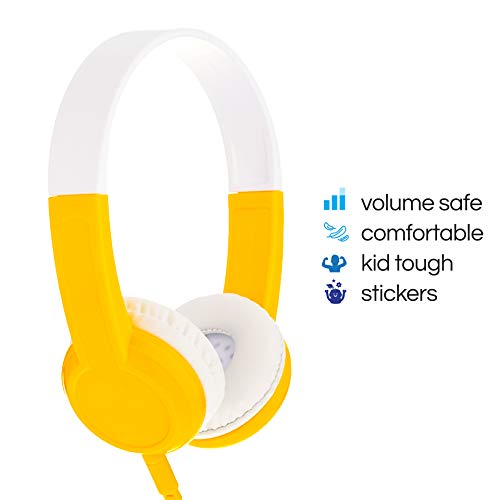 BuddyPhones Explore | Kids Headphones | Non-Foldable, Durable, Comfortable | Kids Safe Volume Limiting Headphones with Audio Splitter & Mic | Yellow