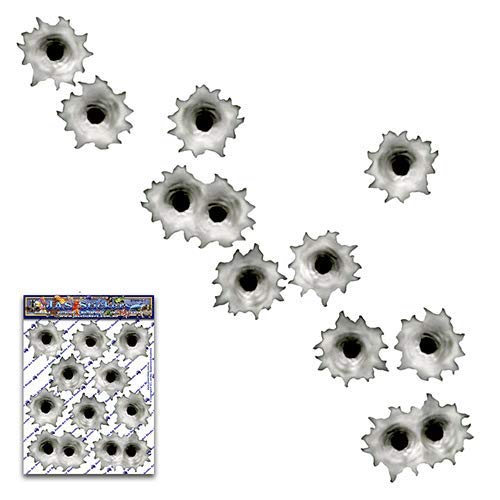 - Pack Size:13.5cm(5.3") x 18.5cm(7.3"). Pack contains10 stickers - 2 double - 7cm(2.7") x 4.5cm(1.7") & 8 single bullet holes 4.5cm(1.7") x 4.5cm(1.7") stickers.