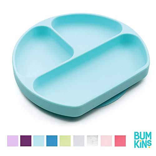 Bumkins Silicone Grip Dish, Suction Plate, Divided Plate, Baby Toddler Plate, BPA Free, Microwave Dishwasher Safe - Blue