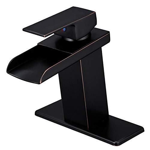 BWE Oil Rubbed Bronze Waterfall Bathroom Faucet Single Handle One Hole Deck Mount Lavatory