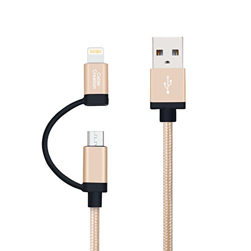 Cablecreation Part#: CC0048 714602973654 - 2-in-1 Lightning and Micro USB Cable 4FT, CableCreation Braided Android and iPhone Charging Cable [MFi Certified], Compatible iPhone 11 /X /8/7, iPad, Samsung, Nexus, LG, HTC and More, Gold