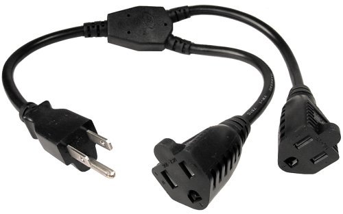 Get full use of your power strips and UPS outlets with this premium cable. Just plug this cable between your bulky power adapter and an unused outlet. Designed with saving space in mind, this “Y” cable allows you to plug two adapters into a single outlet.Features: