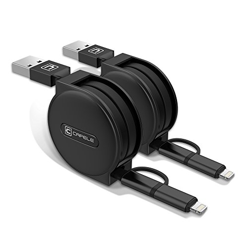 Retractable Lightning Cable, CAFELE 2 Pack 3.3ft Lightning Micro USB 2 in 1 Powerline iPhone Cord Charger Data Sync Cable Adapter for iPhone X 8 7 6s 6 Plus 5s 5 SE, Samsung S7 S6, Sony, Nokia - Black