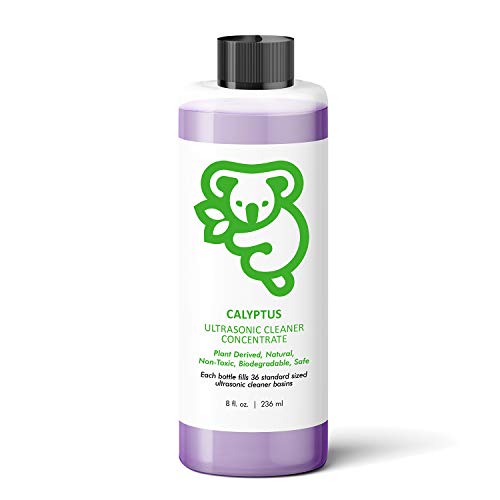 - GREAT VALUE: Includes one 8-Ounce 100% American Made Calyptus Ultrasonic Cleaner Concentrate bottle | Can be diluted up to 1:140 ratio with water | We recommend 1 capful per 20oz water (one ultrasonic cleaner basin) | One bottle fills 36 basins