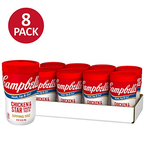 Sip delicious comfort with Campbell's Sipping Soup Chicken & Star Shaped Pasta Soup. We load our grab-and-heat cups with your favorite medley of premium chicken broth, fun star-shaped pasta and tender chicken bites to warm you up on-the-go without ever letting you down.Features: