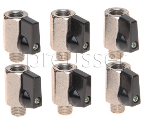 6 heavy duty 1/4" mini-ball valves for use in carpet cleaning extractors. Viton seals are chemical resistant. These valves are rated at 1200 psi.Features: