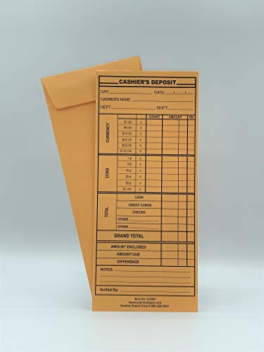 This Envelope is the Same Size as a Standard # 10 Business Envelope. Envelope has a Simple Report Printed on One Side in Black. Report Features Detailed Count of all Cash Enclosed, Total for Cash, Credit Cards, Checks and Others. Gum Closure Flap to Seal all Enclosed Cash & Other Records.Features: