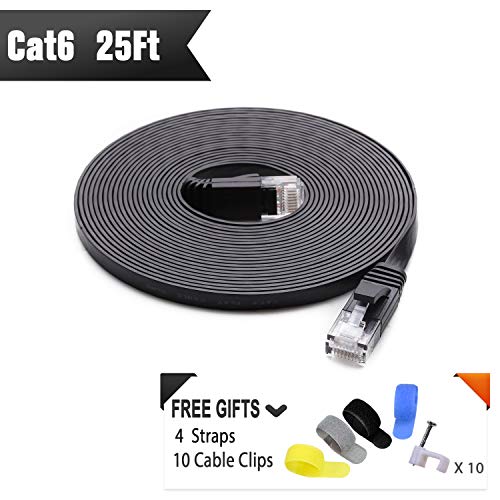 Cat 6 Ethernet Cable 25 ft (at a Cat5e Price but Higher Bandwidth) Cat6 Internet Network Cable - Flat Ethernet Patch Cable Short - Black Computer LAN Cable - Enjoy High Speed Surfing