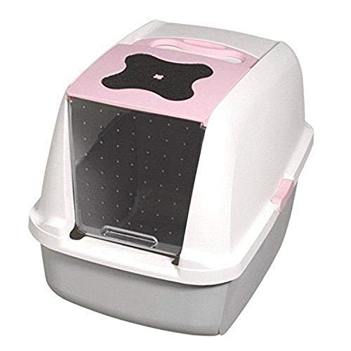 Catit Hooded Cat Litter Pan, White/Pink