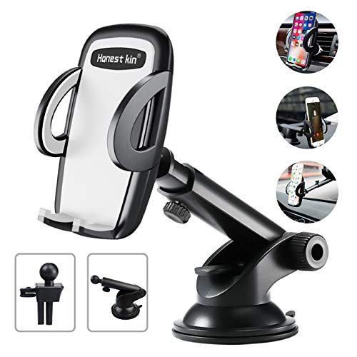 Cell Phone Holder for car HONEST KIN 3 in 1 Universal Car Phone Mount Car Air Vent Holder Dashboard Mount Windshield Mount Compatible with iPhone 11 XS XS Max XR X 8 8+ 7 7+ SE 6s 6+ 6 5s