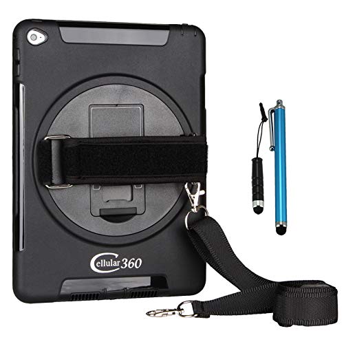 Cellular360 Shockproof Case for Apple iPad Air 2 2014, Car Headrest Mount Case with 360 Degree Rotatable Kickstand, Adjustable Handle and Shoulder Strap (Black)