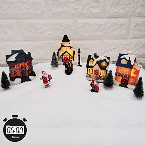 Christmas Winter Village Houses, with LED Light up, with Timer, Christmas Figurines Accessories for Villages Landscape Accessory Set