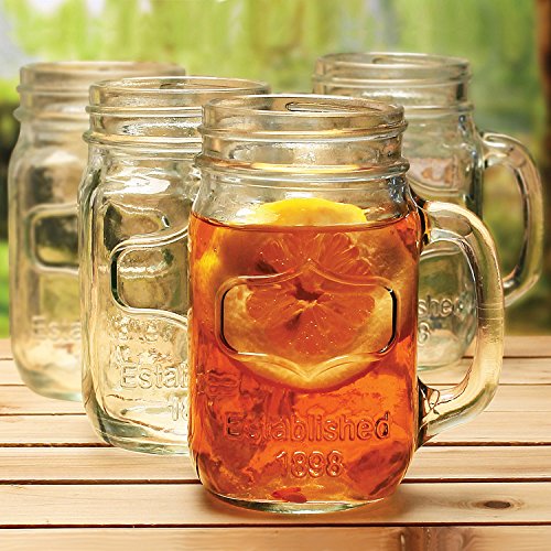 Wine Enthusiast (Kitchen) Part#: 735 10 04 704572669114 - Circleware 66911 Yorkshire Mason Jar Mugs with Glass Handles, Set of 4, 17.5 Ounce, Clear