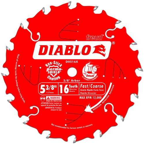 Freud D0516X Diablo 5-3/8-Inch 16 Tooth ATB Fast Cutting Cordless Trim Saw Blade with 10mm ArborFeatures: