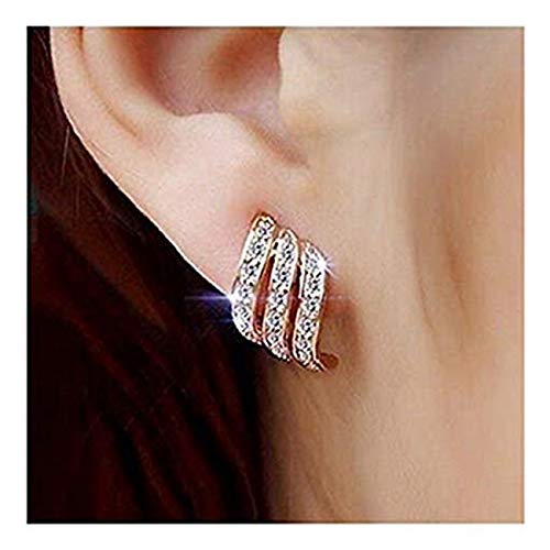 Challyhope Part#: 645098402178 - Clearance! Lady Elegant Rose Gold Diamond-studded Curving Ear Stud Exquisite Earrings for Women Wedding Jewelry