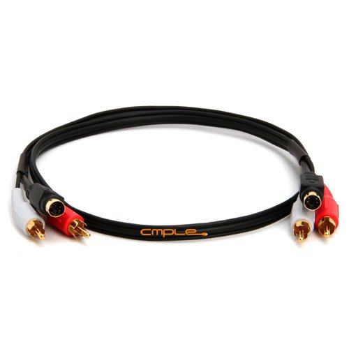 Cmple - S-Video & 2-RCA Audio Cables Combo 4 Pin SVideo Male Cord, Gold Plated - 3 Feet