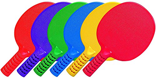 Standard-sized, lightweight paddles are made of a soft yet break-resistant material. One-piece institutional-quality construction leaves nothing to peel away and ensures that these paddles will retain their shape even after multiple uses. Set includes 6 paddles, one each Blue, Green, Red, Yellow, Purple, and Orange. Great for commercial use, schools, camps arcades ect.... Also perfect for home use. The bright colors are fun and enticing for young children's and adults alike. Traditional ping pong / table tennis paddles are manufactured with multiple layers. After extended play these layers tend to peel apart hurting the performance of the paddles or making them completely obsolete. These paddles are built with a one piece design that will not peel making these paddles indestructible. This item is exclusively made by and sold by Coast Athletic. Coast Athletic is a leading supplier of sports, recreation and physical education equipment for a wide variety of sports disciplines. All product may be purchase in wholesale / bulk quantities for a discounted cost. Contact us for a custom price quote.Features: