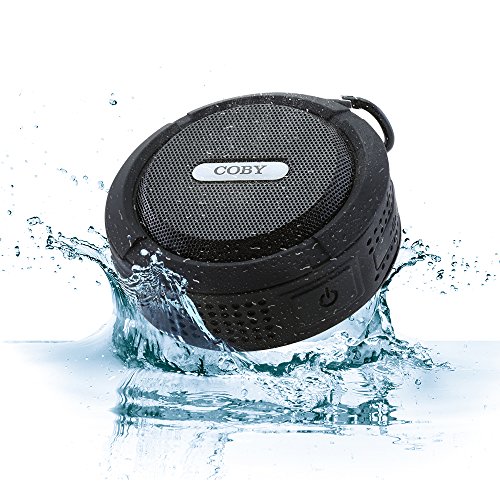 From the Manufacturer This water-resistant, compact speaker has a built-in suction cup, perfect for the beach, pool, and on-the-go! Listen to your favorite tunes while showering and still be able to control all the functions without having to step out of the shower. Features a rubberized, rugged exterior for ultimate impact resistance. Carabiner attachment included. Features:Coby CSBT-328 Waterproof Portable Handheld Bluetooth SpeakerBluetooth compatibiltyHi-Fi stereoWater-resistant, IPX5Great for pool, shower, and on the goBuilt-in suction cupBuilt-in mic and answer buttonMedia shortcut keys within easy reachSoft-touch finishRugged, compact, and portableBluetooth range: up to 33 ft.Bluetooth version: 4.1 + EDR Play time: up to 7 hoursCharge time: up to 3 hoursTalk time: up to 4 hoursStandby time: up to 3 weeksBattery: 500 mAh lithiumOutput power: 3WDrive diameter: 45mmCompatible with most Bluetooth-enabled devicesOptional 3.5mm cable includedCarabiner attachment includedBuilt-in TF/Micro SD card slotFeatures: