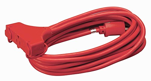 Coleman Cable 4217 14/3 SJTW Vinyl Outdoor Extension Cord, Red, 3-Outlet, 25-Foot
