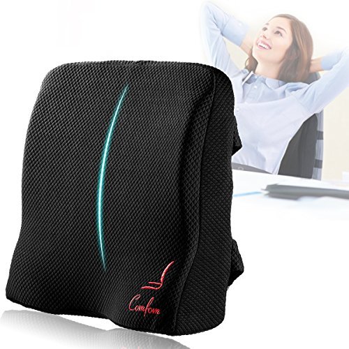 Comfom is focused on developing in home and office comfort accessories, this includes our newest generation of product - Comfom Memory Foam Back Pillow. We have made an enormous amount of research in order to create a health care buddy for you - unique conception, adequate size, high quality memory foam, breathable mesh cover, dual elastic slip proof straps. Soft enough to provide relief for those who suffer from chronic back pain, sciatic sore and spine discomfort, and sturdy enough for daily use for years. Larger and higher size than most of other pillows - that means more area to disperse your stress The thickness from 2.5 inches to 4 inches according to body curve can perfectly fill the lumbar gap while sitting, but will not take up too much chair space. Multi-angle embracing design molds admirably to the arch of your body when you lean back on the cushion The lumbar pillow definitely helps those who hunch over all day sitting at a desk. It can transform slouches at work or at study to improved comfortable posture Mommy-to-be faces lower back ache while she carries the baby inside her womb. Comfom supportive pillow will be a godsend for the would-be-mother to take off lumbar pressure. Make long distance driving comfortable - maintain the posture and minimize the pain in the lower back You will not get sweaty with long sitting sessions with this cushion because of the breathability of the cover.Features: