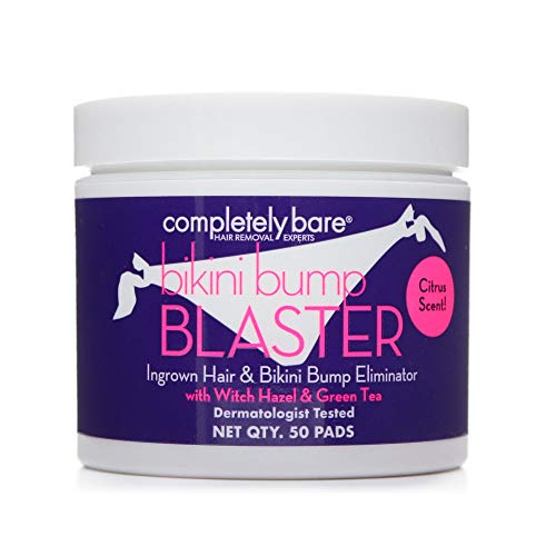 Completely Bare Bikini Bump Blaster Pads- All Natural Antioxidants, Witch Hazel & Green Tea, Prevents Ingrown Hairs and Bumps, Gentle Exfoliating Treatment Wipes, Cruelty-Free Vegan Formula, 50ct