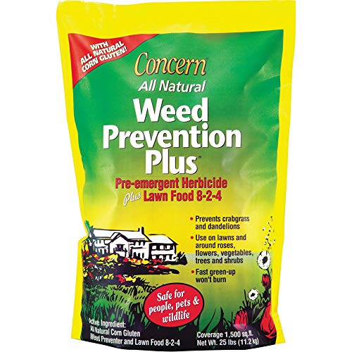 The Concern Weed Prevention Plus for Lawn Care 8-2-4 harnesses the power of corn gluten meal (82%), nitrogen (8%), phosphate (2%) and potash (4%), which combine to create a powerful weed prevention fertilizer. Up to 90% effective weed control in the first year on dandelions and crabgrass. Using an all-natural product like Weed Prevention Plus will give you a healthy, thick, lush lawn all year long!Features: