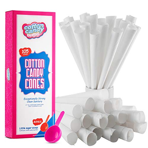 - BONUS SUGAR SCOOP: We even include a bonus sugar scoop for measuring sugar into your cotton candy maker! Now you can enjoy sweet, melt-in-your-mouth, carnival-quality cotton candy anytime! Cotton candy machine and cotton candy sugar are not included. Our paper cotton candy cones and sugar scoop are the perfect cotton candy accessories!