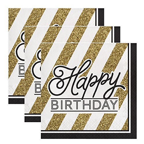 Creative Converting 317546 48 Count Paper Lunch Napkins, Happy Birthday, Black and Gold
